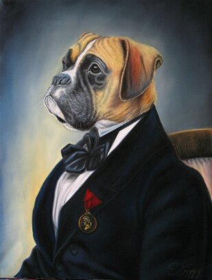 Une de mes spécialités : donner dignité, caractère et émotion à ton compagnon, comme un portrait de famille.